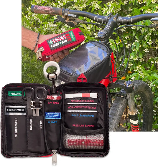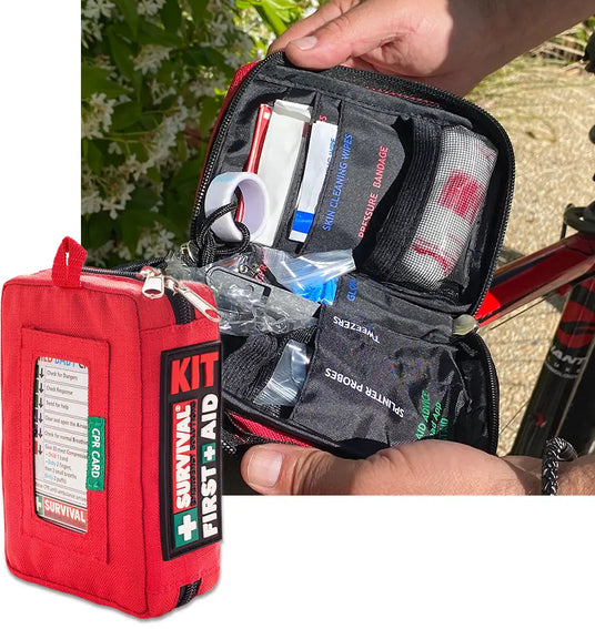Weighing in at under 200 grams, the SURVIVAL Compact First Aid KIT is ideal for activities including cycling, mountain biking, hiking, mountaineering, caving or endurance races.