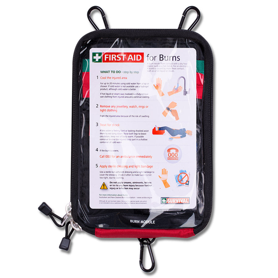 The SURVIVAL Burn Module is designed as a "grab and go" pack for workplaces at high risk of burns. It's also a great module to have around the home. The module contains: